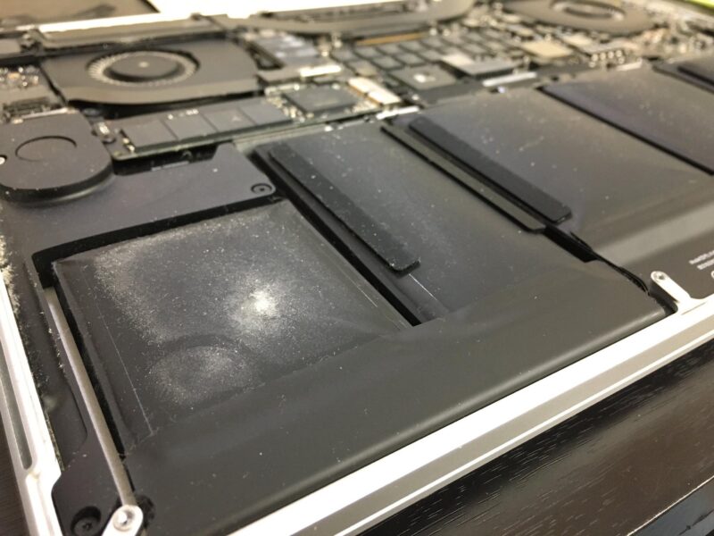[MacBook 15inch 2015のバッテリー交換] 「会社のスタッフ複数人で使用していましたが、なんだか最近ガタガタしたりトラックパッドの反応もおかしくなって本体も熱くなって困っています。」 ↑今回のケースはバッテリーの膨張による影響でした。 拝見した... -